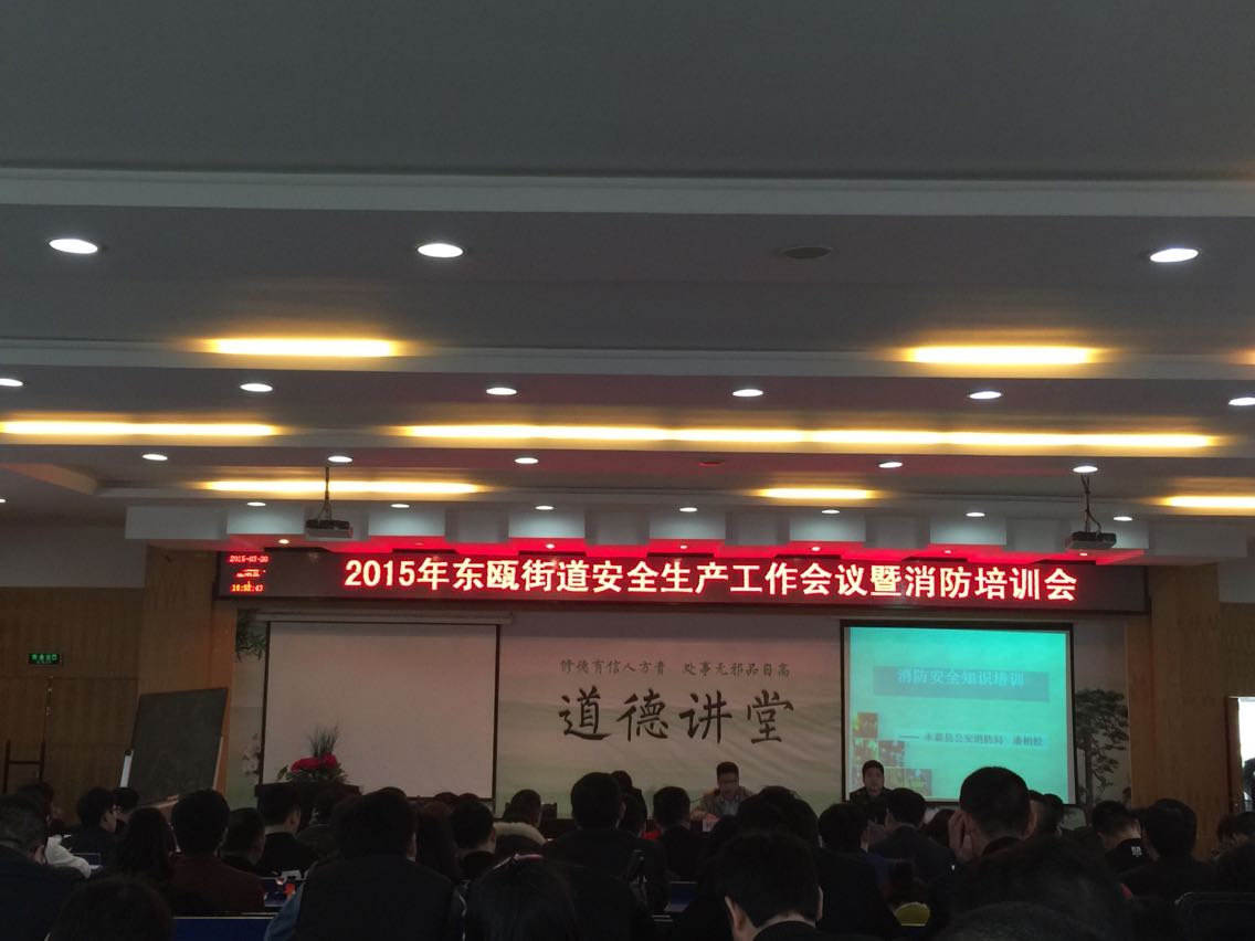 3月21日東甌街道(永嘉東甌工業(yè)園區(qū))安全生產(chǎn)工作會議暨消防培訓會在東甌工業(yè)園區(qū)舉行,本次會議有東甌街道黨委副書記主任杜國平主持,工業(yè)園區(qū)副主任做去年工作報告和今年的工作重點,園區(qū)副書記朱琳哲重點對消防的重要性、消防預防步驟、事故案例等做了詳細的介紹和分析,并囑咐個企業(yè)負責人和主管部門嚴把安全生產(chǎn)關(guān),定期做安全檢查,對達不到安全生產(chǎn)標準的部門和企業(yè)馬上整改,做到萬無一失。