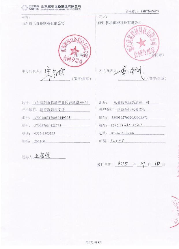 近日,國家核電-山東核電設備制造有限公司 核電閥門試驗臺采購編號:MEQ-MMS01-SPEM001項目,2014年7月經過中國核工業二三建設有限公司初步推薦和案例說明,2015年5月通過山東核電設備采購技術部考察、技術評議,2015年7月經過采購部公開招標。浙江優機機械科技有限公司JWT-80-1500LB和JWT-250-2500L核電專用閥門試驗臺憑著優機科技優秀的業績和穩定可靠的安全性能再次成功奪得國家核電閥門檢測項目,先前浙江優機科技有限公司的核電閥門試驗臺在秦山核電和三門核電項目也有成功案例,此次再奪得核電項目使公司的試驗臺在核電閥門檢測領域更勝一籌,并在業內樹立更好的口碑和品牌知名度。此次中標的兩臺核電閥門測試臺是國家技術專利產品,專利號:ZL 2014 2 0196239.6 。其中JWT-250-2500LB測試壓力最高達2500磅,試驗介質接觸部分全部采用高質量不銹鋼材料,液體介質采用零污染一次性試驗,是目前國內環境要求和特性要求最高的試驗設備之一。該設備主要測試核電專用焊接球閥、截止閥、止回閥、閘閥等,本設備試驗壓力高,安全性能可靠,操控方便,是中國核電下屬公司多個項目的合格供應商。