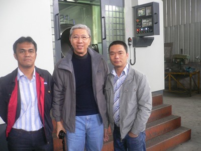 圖4:歐颯公司創始人CEO王先生(圖中)歐颯公司技術監理工程師DOGUA(圖左1)和李總一起合影留念
